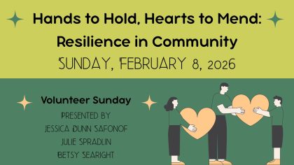 Some days, our own happiness and the world’s well-being don’t seem salvageable. We can become doubtful and fearful. So much seems unfixable. This month’s theme of embodying resilience feels extra important right now. Growing resilience can enable us to have heart and hope. Join us on “Volunteer Sunday” to learn how volunteering and supporting our congregation can be a spiritual practice that strengthens your resilience through community, a sense of purpose, and by supporting the resilience of others through social justice, the caring team, and other groups in our congregation.